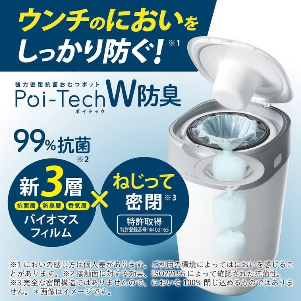 おむつを1つずつねじって密封し、ウンチの臭いを閉じ込めます。