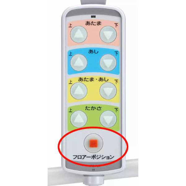 目視による安全確認をしながらベッドを下げ、挟み込みを予防