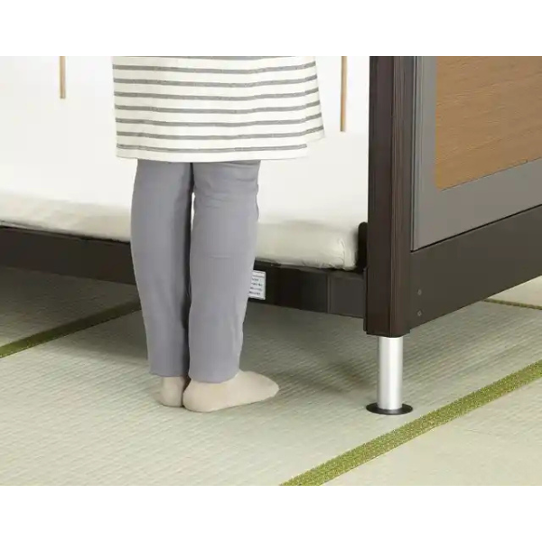 ベッドの高さを調整できるので、立ち上がらず床を座位移動