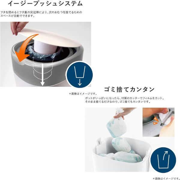 フタ裏の突起棒により、おむつを手で奥まで押し込まなくても平気!